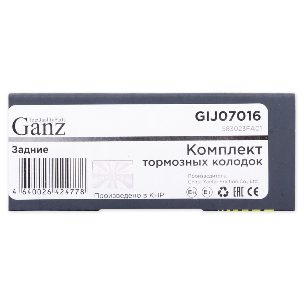 Тормозные колодки GANZ дисковые задние GIJ07016