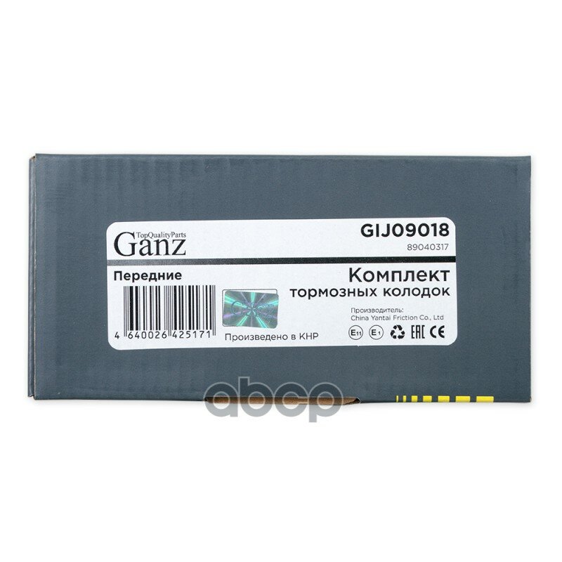 Тормозные колодки GANZ дисковые передние GIJ09018
