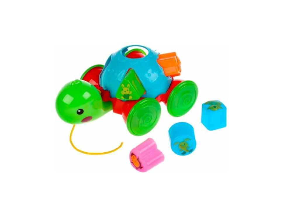 С игрушкой-сортером главная задача малыша правильно подобрать фигуру к соответствующему отверстию. Кроме того, ребенок с удовольствие будет играть с черепашкой, катая ее по полу.