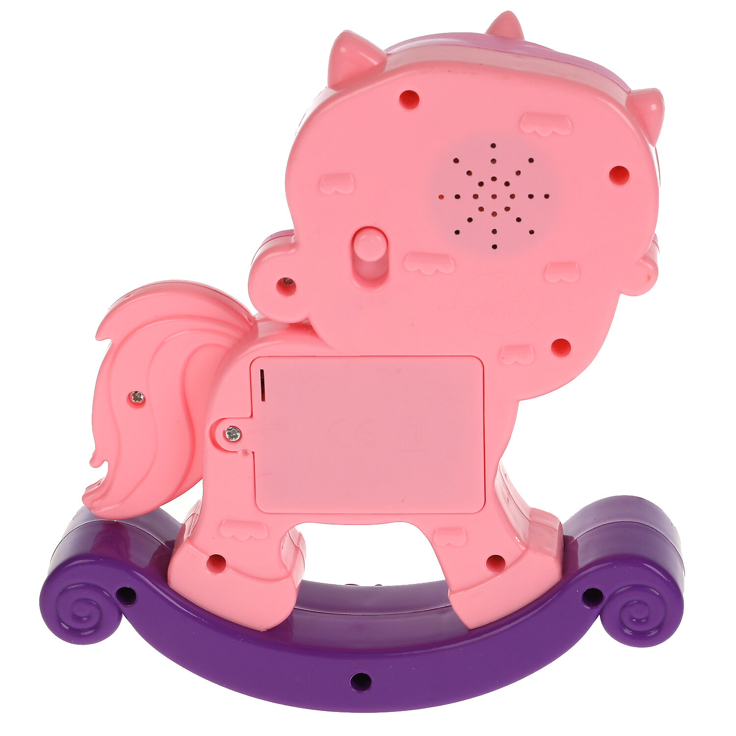 Ребёнок с удовольствием будет играть с этой занимательной игрушкой, выполненной в виде очаровательного единорога. При нажатии на большую яркую кнопку, красиво светящуюся во время работы игрушки, малыш услышит добрые песенки из известных мультфильмов и весёлые стихи, а также сможет поотгадывать интересные загадки. Форма в виде качалки сделают игру с этим единорогом ещё более увлекательной.