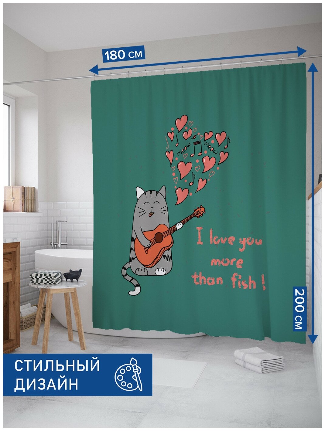 Шторка-занавеска для ванной JOYARTY Штора для ванной Влюбленный кот-гитарист 180х200 см