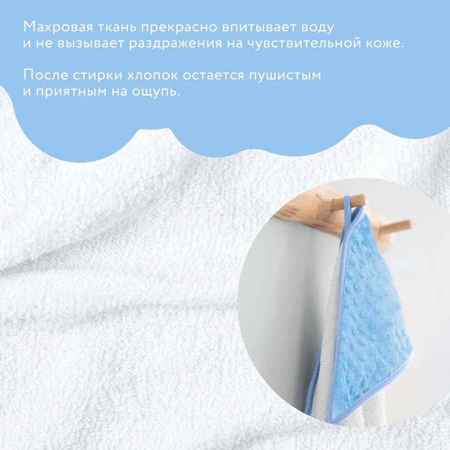 Основание полотенца выполнено из мягкой махровой ткани (100% хлопок) плотностью 430 г/м2.