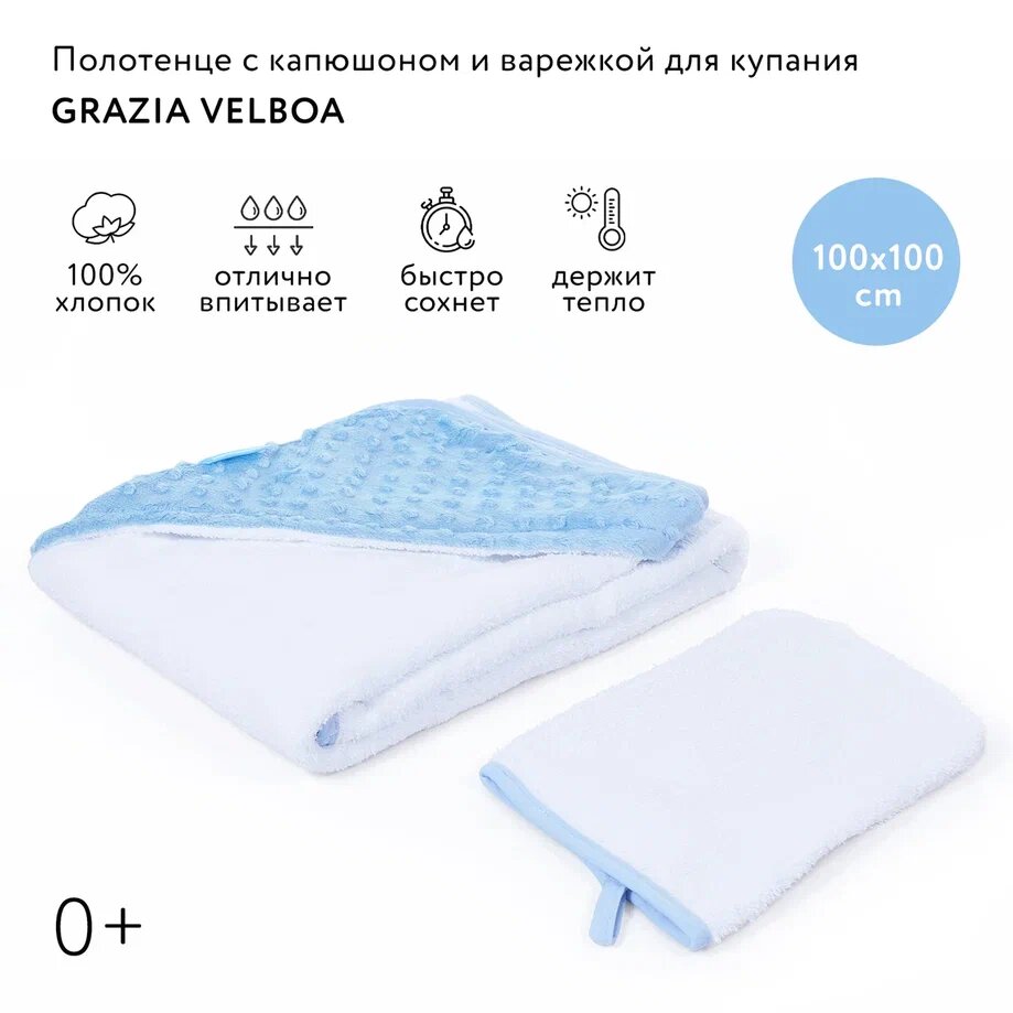 Набор Nuovita Grazia, состоящий из большого полотенца с уголком и варежкой для мамы, сделает выход из ванной максимально комфортным!