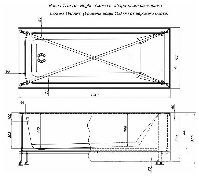 Популярная эргономичная модель акриловой ванны Aquanet Bright 175х70 с пологой спинкой, плавно перетекающей в бортик и имеющей удобный угол для комфортного нахождения в ванне даже без подголовника. Размеры ванны с шириной 70 см и длиной 175 см - идеальный вариант для современных ванных комнат. Чаша ванны имеет максимально возможный внутренний объем для своих размеров - 190 литров, при комфортной глубине в 39,3 см. Ванна выдерживает нагрузку более 300 кг. Эта надежность обеспечивает двойным слоем армирования и закладными из МДФ-плит в местах наибольшей нагрузки.