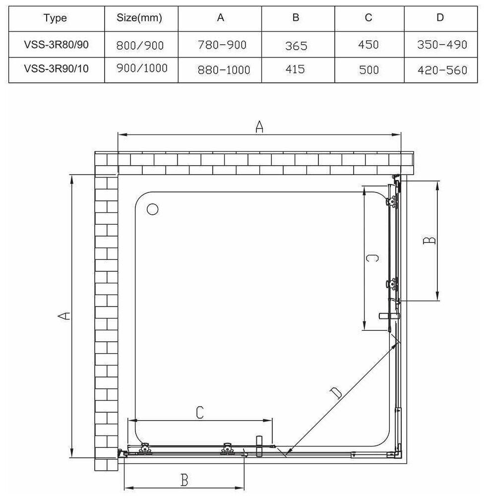 Душевой уголок Vincea Rapid (80-90)x(80-90) VSS-3R80/90CL.