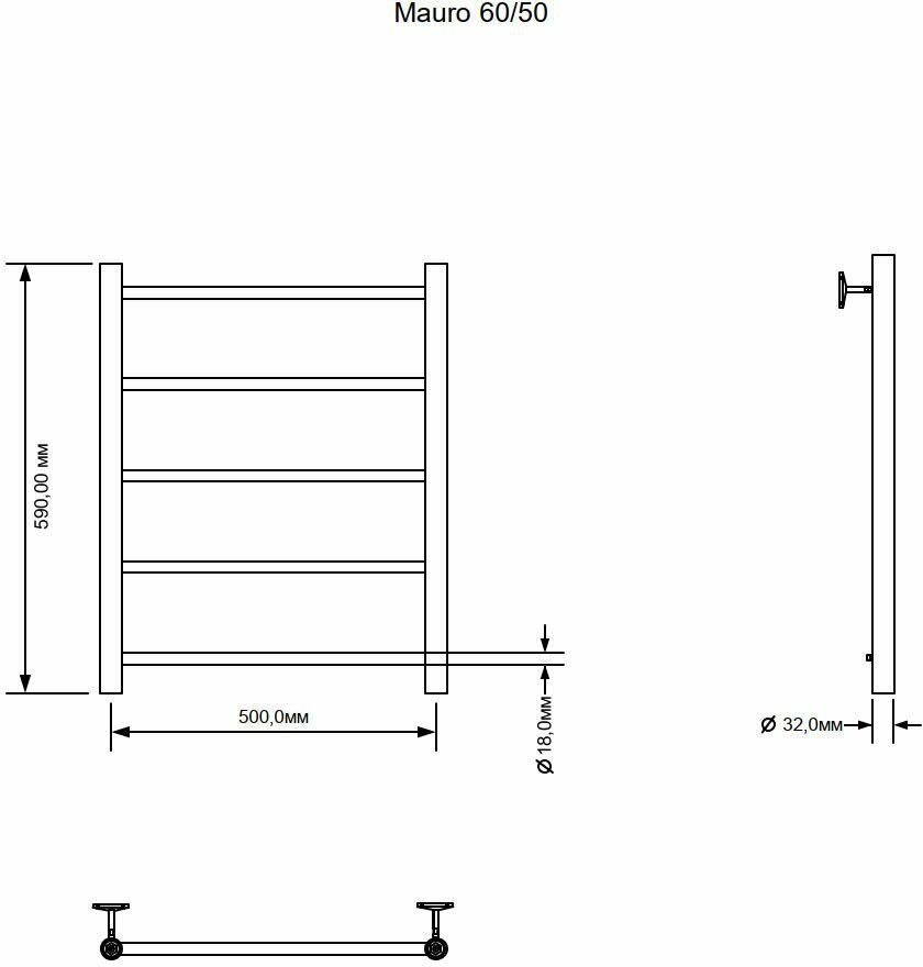 Водяной полотенцесушитель. Форма-Лесенка. Межосевое расстояние-500мм. Вид нагревательного элемента-Вода. Поворотный-Нет. Подключение-К системе центрального отопления. Диаметр подключения-1/2. Направление подключения-Горизонтальное