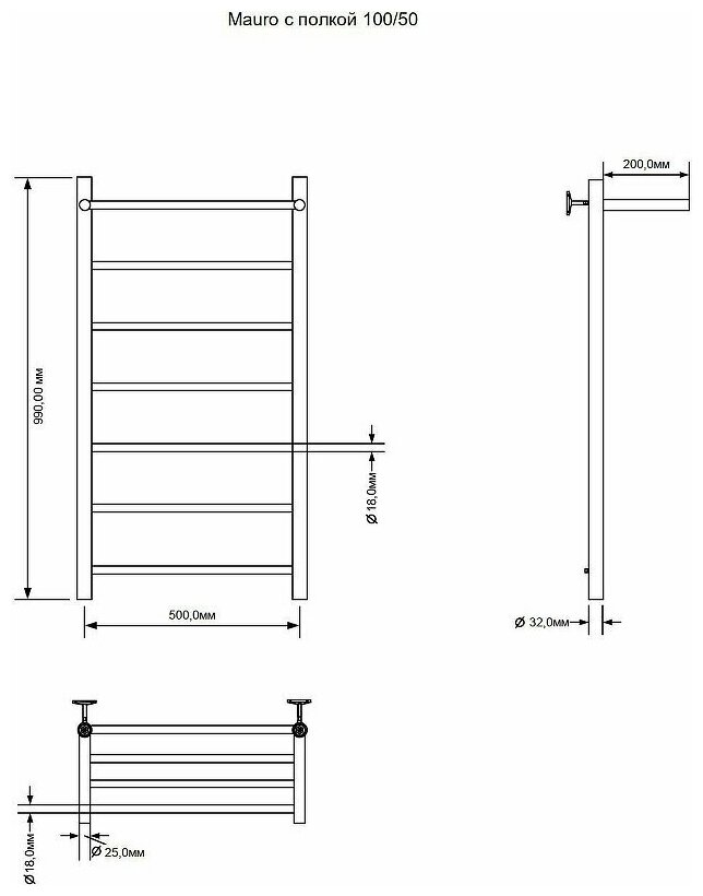 Водяной полотенцесушитель Aquanet Mauro 100x50 282322 с полкой Хром (размер: 50х100 см)