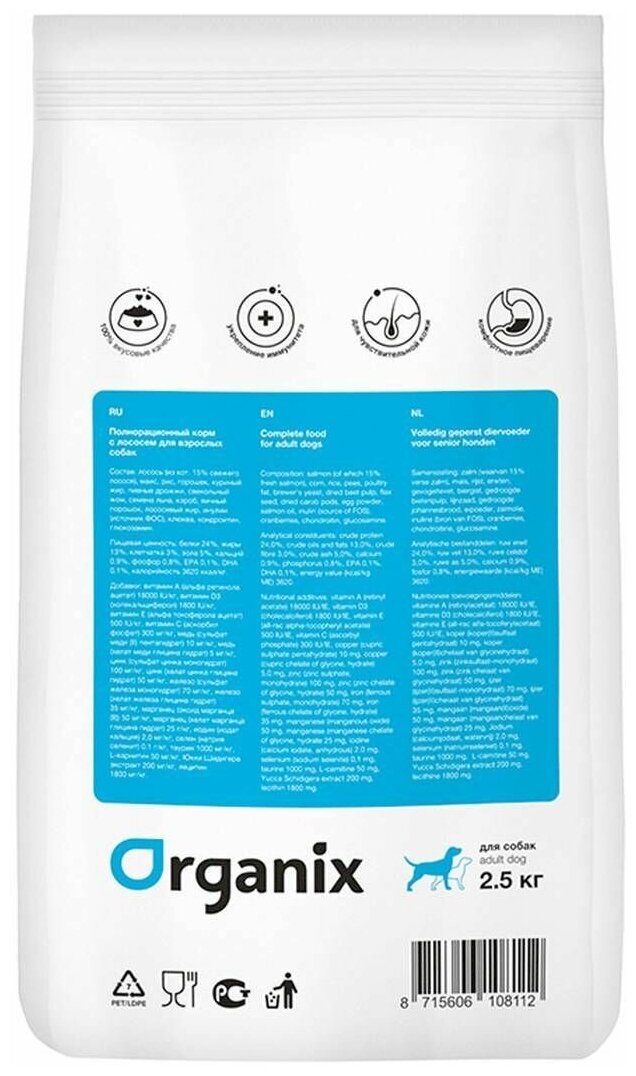 Organix / Сухой корм Органикс для собак свежий Лосось и рис Adult Dog Salmon