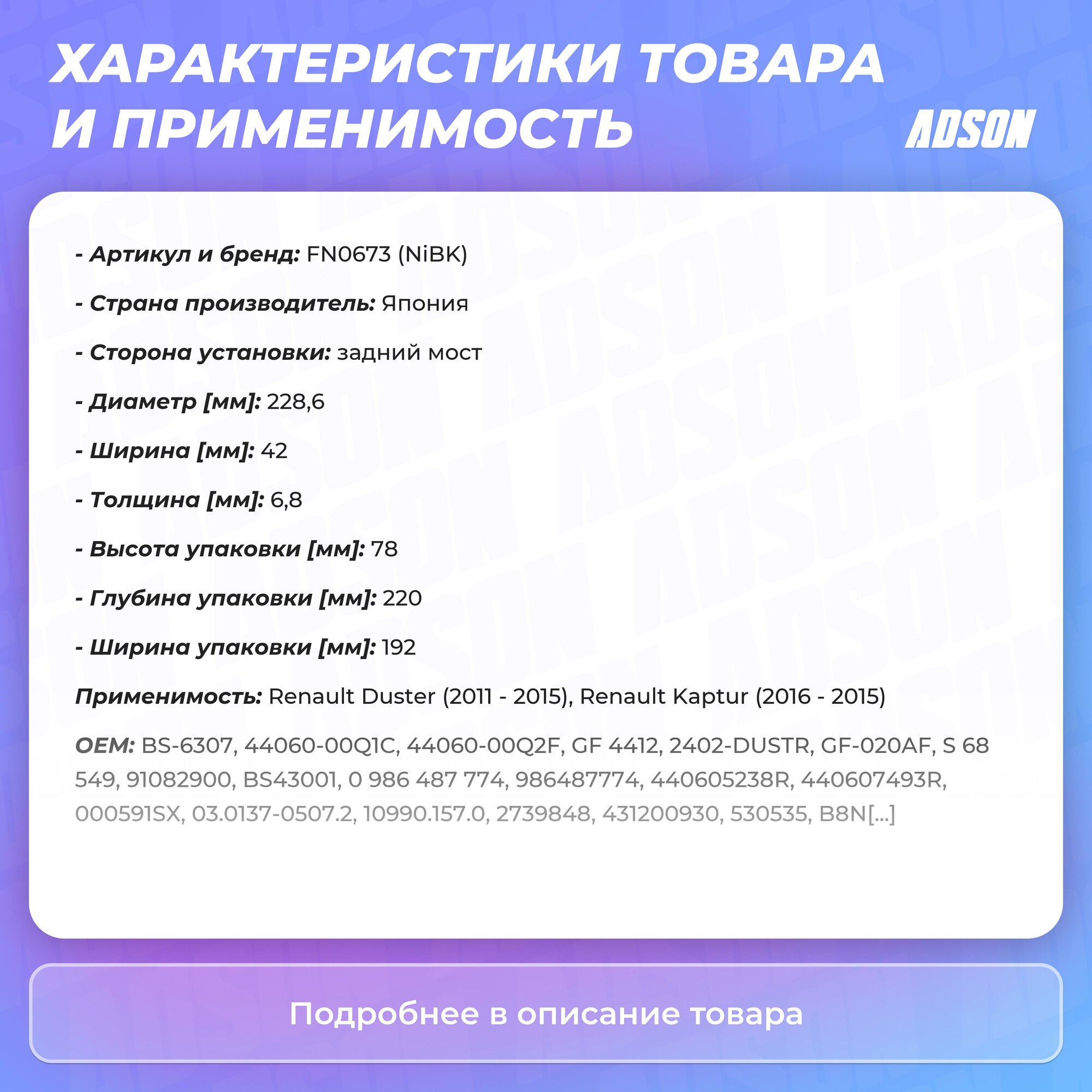 | Совместимость | RENAULT Duster II |
