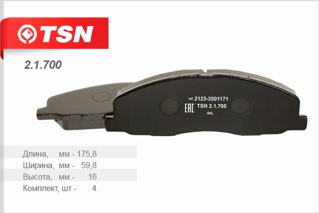 Тормозные колодки TSN дисковые передние 2.1.700