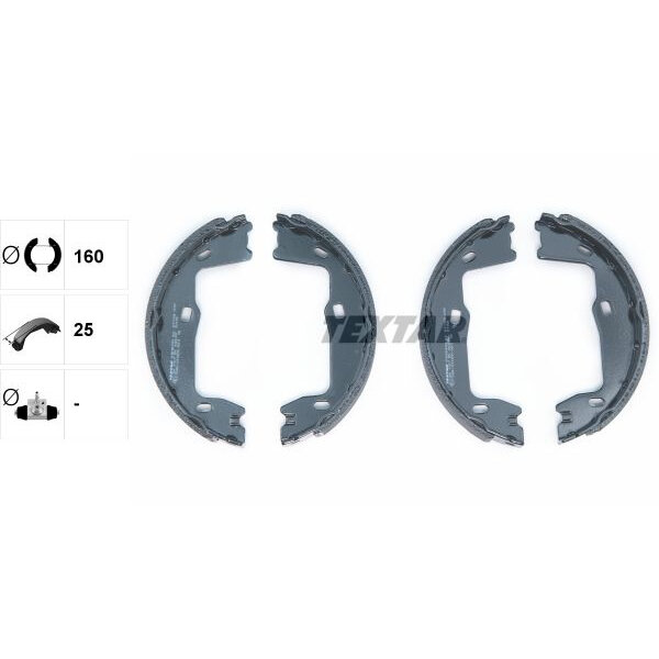 Колодки барабанные стояночного тормоза [160x25]Оригинальные номерa (OEM): 1605686, 1605764, 1605897, 1605921, 1605938, 4543419, 4836441.