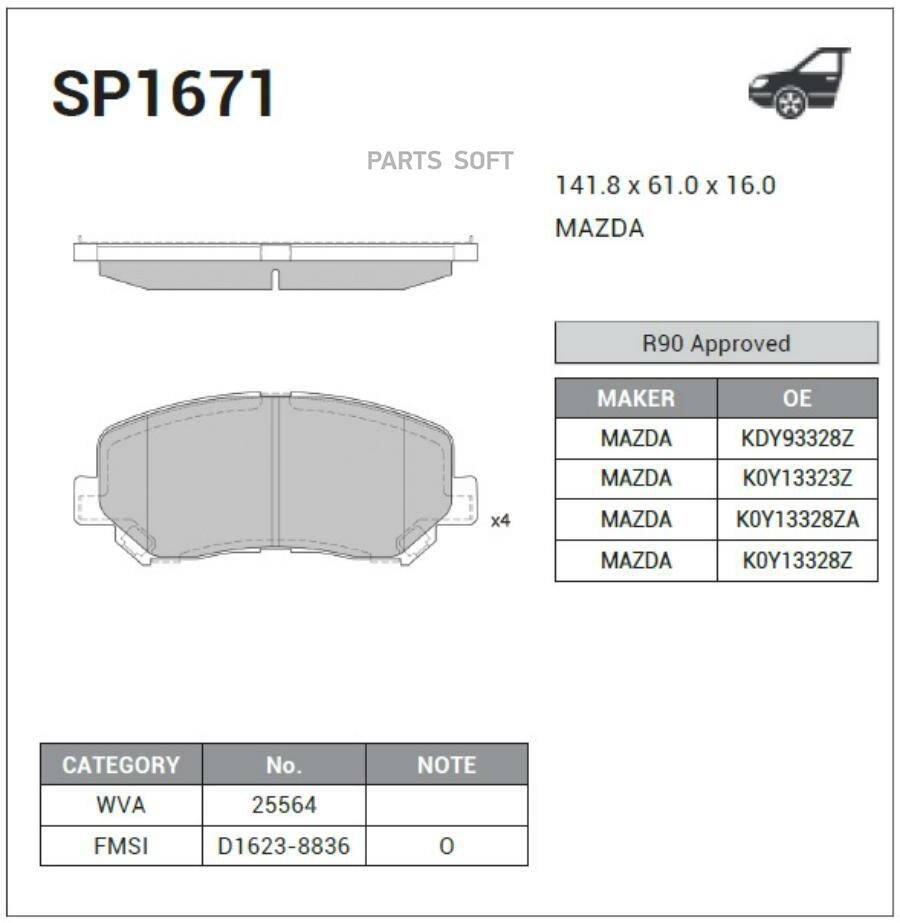 Колодки тормозные SANGSIN BRAKE MAZDA CX5 12- Пер SANGSIN BRAKEцена за 1 шт.