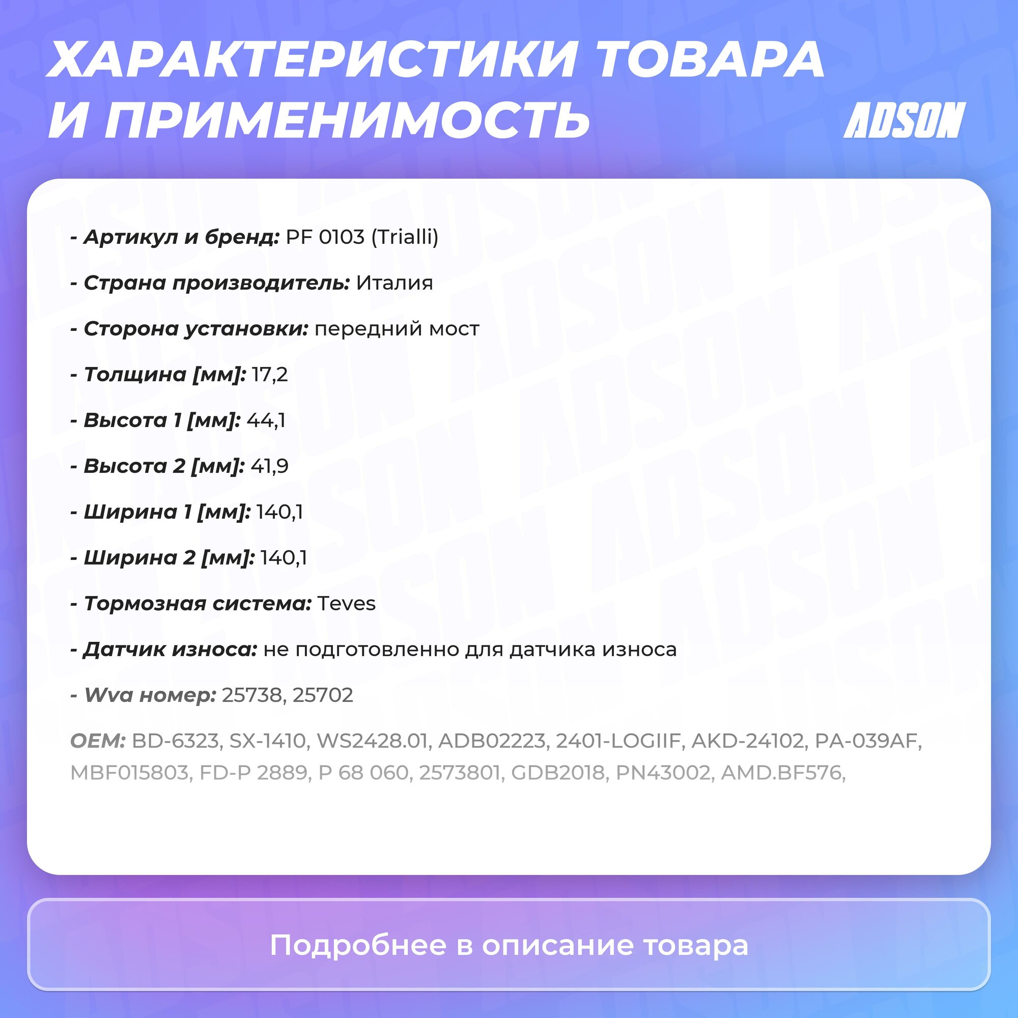 Сервис сравнения цен СкидкаГИД предлагает сравнить цены на товар «Тормозные колодки TRIALLI дисковые передние PF 0103»