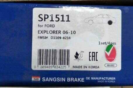 Сервис сравнения цен СкидкаГИД предлагает сравнить цены на товар «Тормозные колодки SANGSIN BRAKE дисковые задние SP1511»