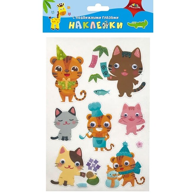 Наклейки с подвижными глазками Весёлые котята АппликА