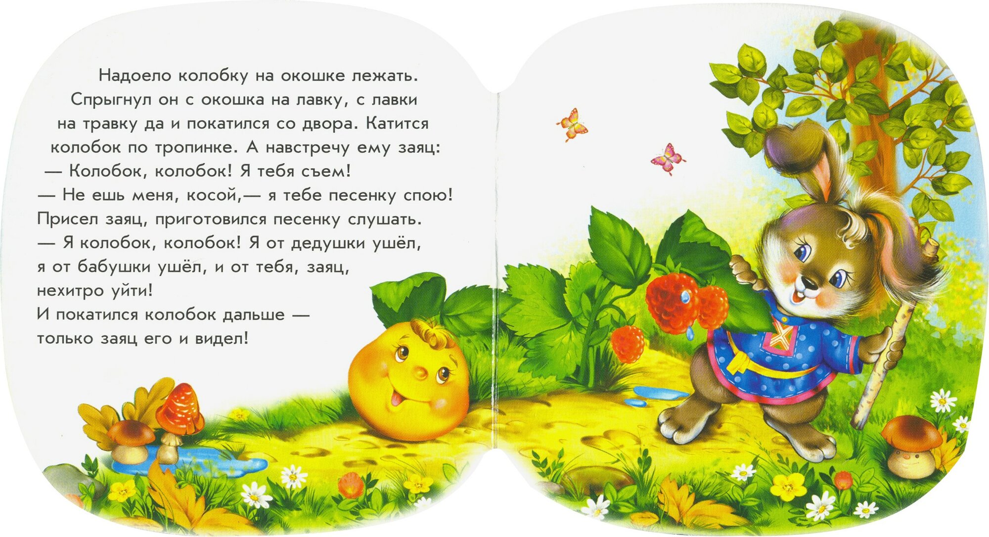 Размер книги четко прописан в описании, но я это упустила, поэтому рекомендую Вам обратить внимание, что книжка очень Маленькая - размером с ладонь. Моему 8-ми мемячному ребёнку удобно ее держать (жевать), вот это единственный плюс, а так я больше такое издание покупать не буду. Иллюстрации тоже какие-то слишком яркие, на мой вкус не очень. Хотелось бы другого колобка.