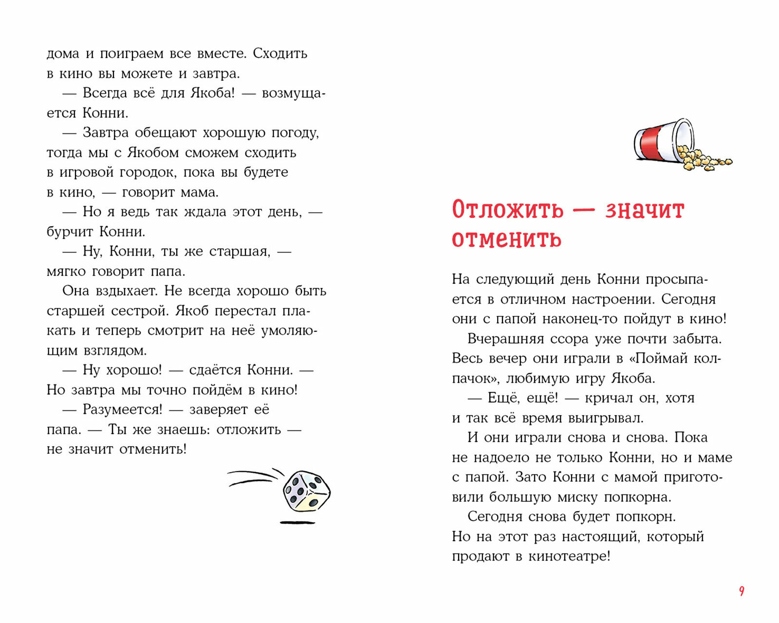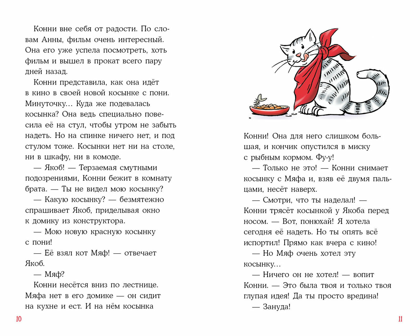 Дочка очень полюбила серию про Конни, я брала для дошкольников. Чтобы развивать навыки чтения, искала книги, которые ее заинтересуют, решила купить про Конни и угадала. Книга удобна для чтения для начинающих, когда дети уже хорошо читают, но большие объемы еще тяжело осилить. Шрифт средний, достаточно большой межстрочный интервал, что облегчает процесс чтения. Брала несколько книг из этой серии, понравились все, но больший интерес у дочки вызвали те, что в стиле детективной истории.
