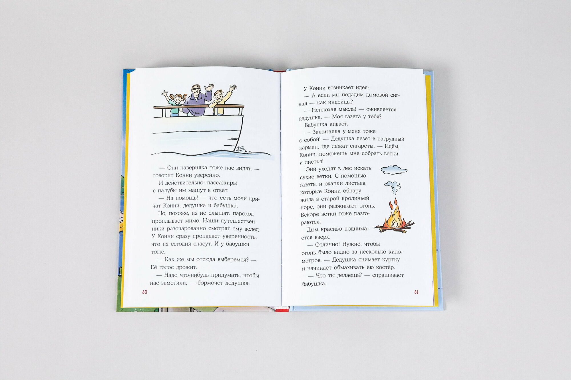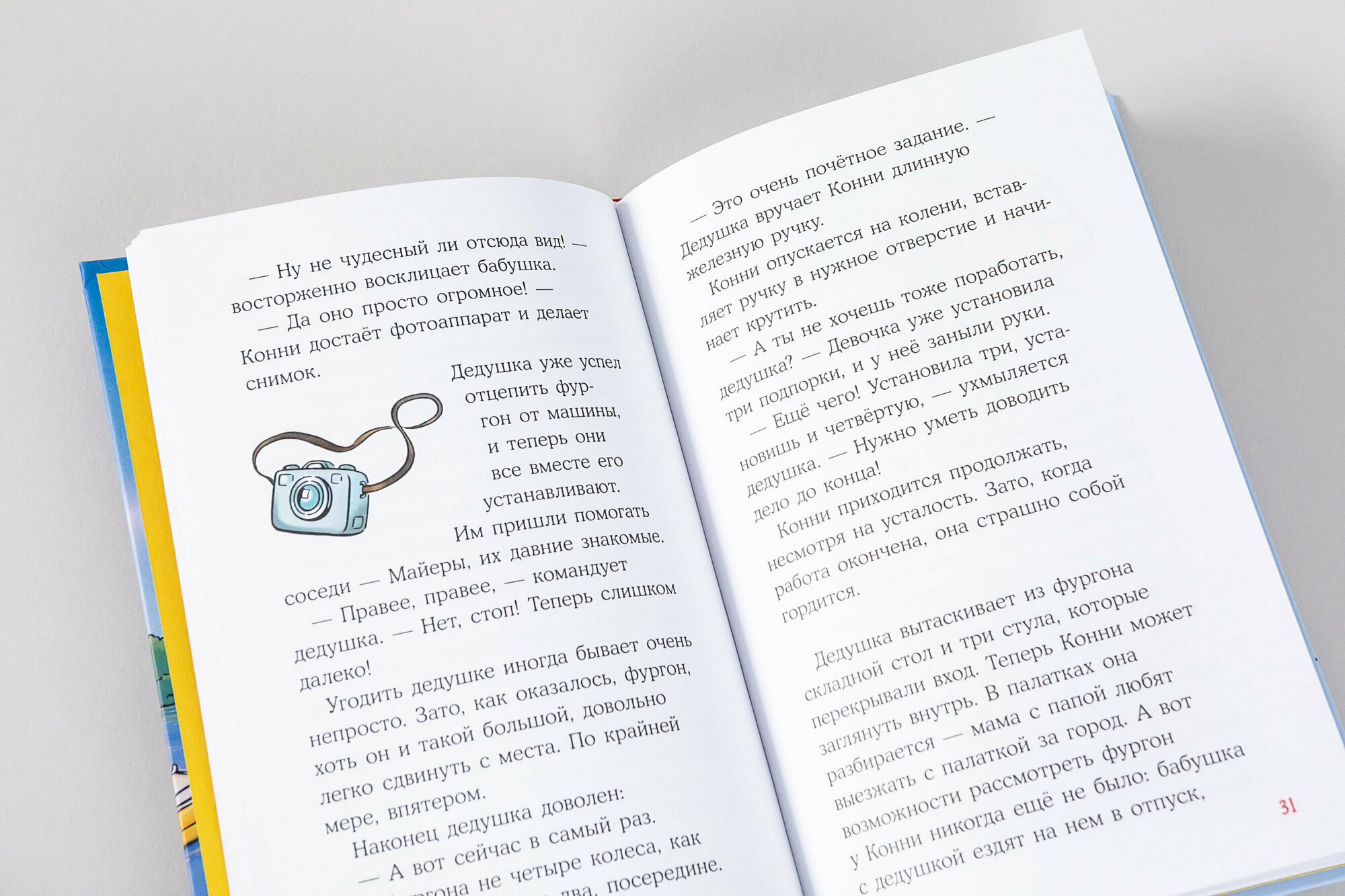 Книга достаточно с интересным сюжетом, советую прочитать её родителям с двумя и более детьми, очень хорошо прописано,что старший ребенок устает от ответственности быть старшим и всегда уступать младшему. Книга о том,что бабушка и дедушка берут Конни в кемпинг с собой для отдыха,но там случается необычная история. Советую к чтению. Ребёнку моему понравилось