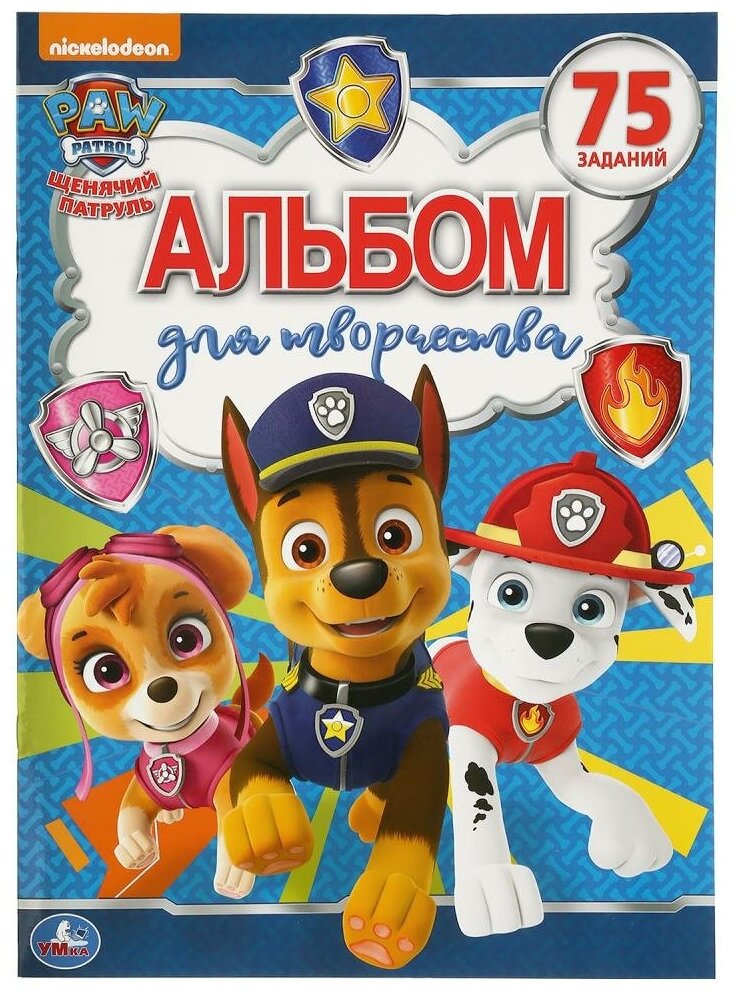 Раскраска 9785506035176 Щенячий патруль. Альбом для творчества Размер изделия: 24х0,3х33 см. Состав: бумага Количество Страниц: 12 Возраст: от 1 года Вес: 80 г. Страна изготовления: Китай Альбом для творчества "Щенячий патруль" - это раскраска с заданиями для малышей. В альбоме собраны 75 вопросов и задачек на развитие логики, памяти и внимания, а на картинках изображены герои популярного мультика.
