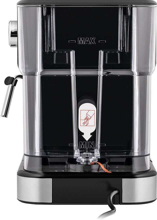 Современная рожковая кофемашина мощностью 1100 Вт из нержавеющей стали – это исполненная мечта кофемана. Давление в 15 бар, создаваемое в кофеварке, позволит получить прекрасный кофе за несколько секунд. Большой контейнер для воды на 1,5 л сделан из матового пластика.