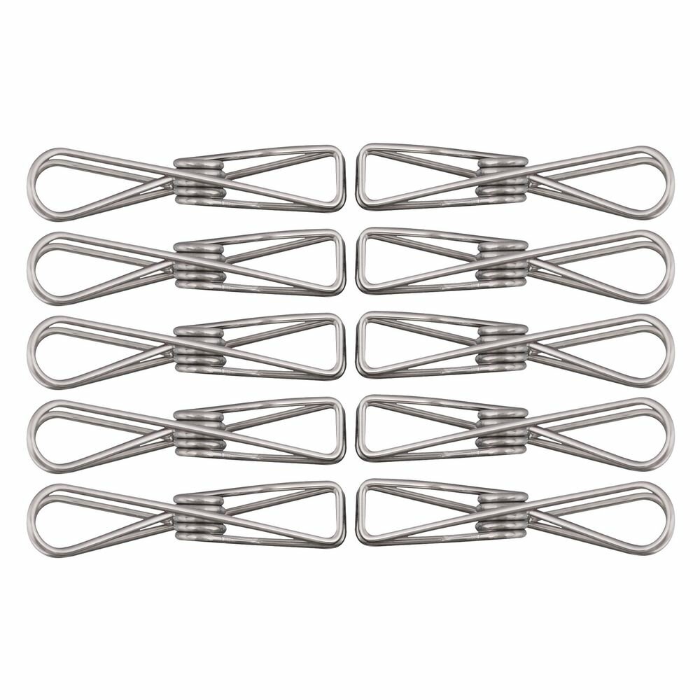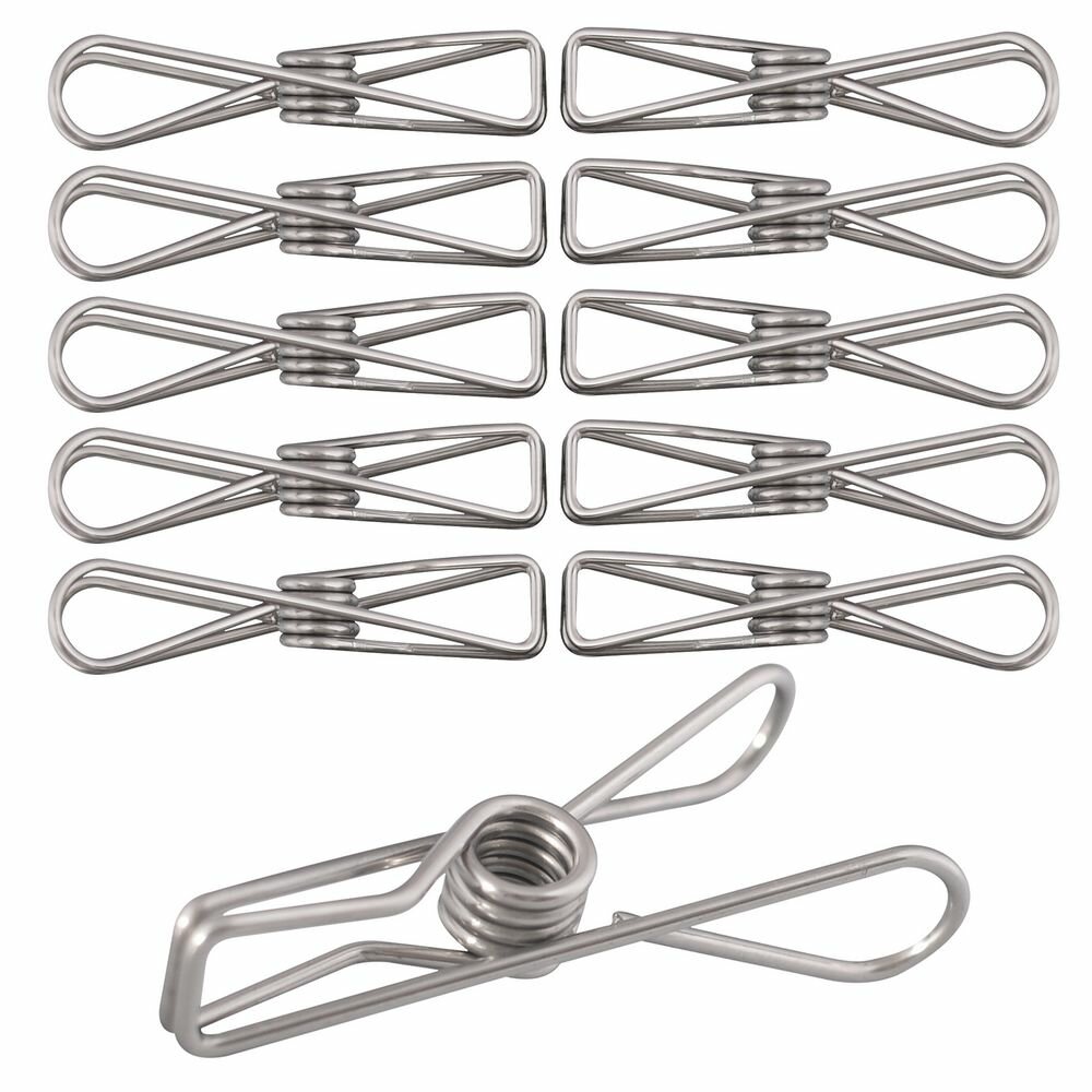 Используются для фиксации белья во время просушивания на улице или балконе. Лаконичная и надежная конструкция прищепки - являются несомненными достоинствами этих изделий. Изготовлены: коррозионностойкая (нержавеющая) сталь. Длина 6см.