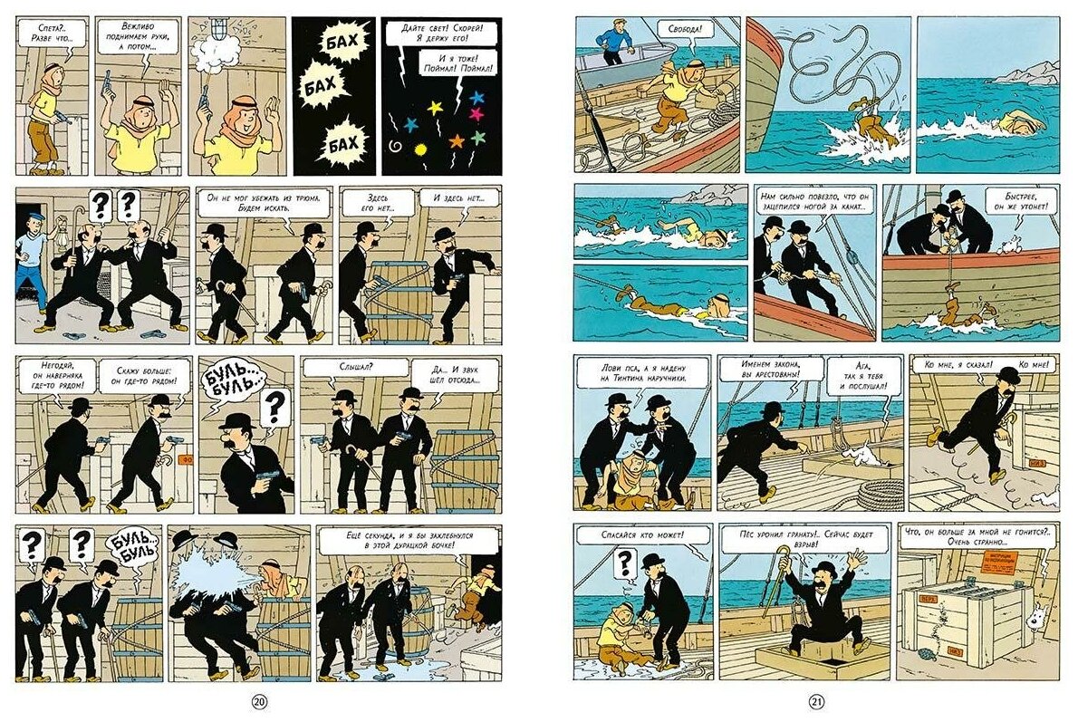 Эрже - призанный классик комиков. Истоии про Тинтина завоевали поклонииков по всему миру. Истории веселые, немного наивные, подходят для детей. Очень классы рисунок в техникк Эрже чистая линия - детализированный, на странице вскгда много подробностей и действия, При желании каджый лист можно рассматривать долго, подмечая разные подробности.