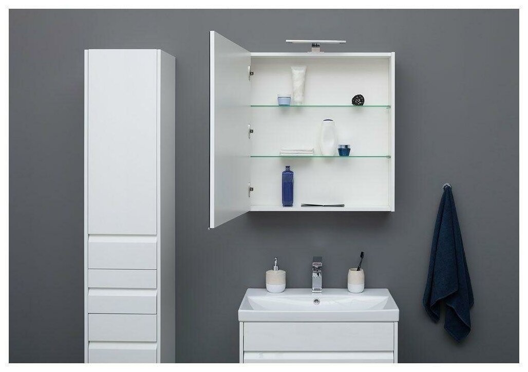 Удобный и практичный шкаф-пенал прекрасно дополнит любой современный интерьер ванной комнаты, и позволит с удобством разместить необходимые бытовые средства и банные принадлежности.