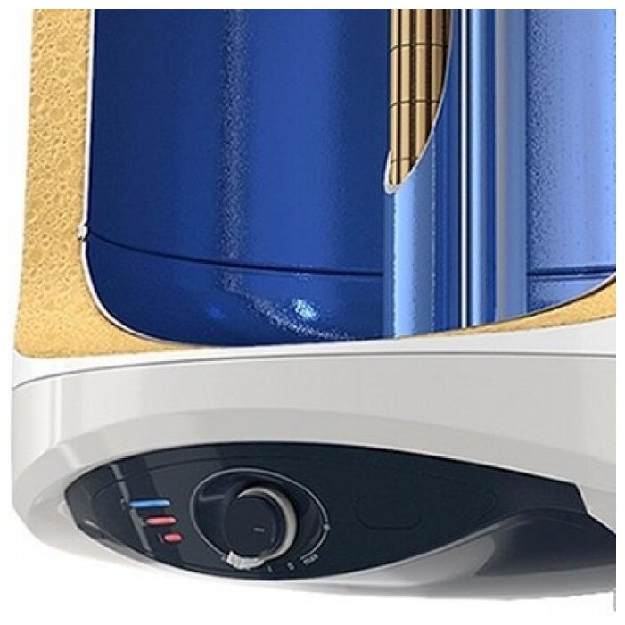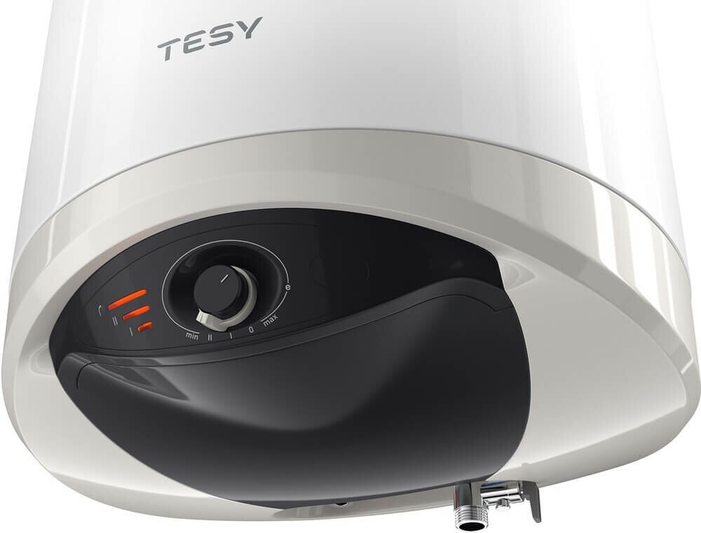 Объем 120 литров, с увеличенной теплоизоляцией в 32 мм, с механическим управлением, сухим керамическим ТЭНом мощностью 2,4 кВт и вертикальной установкой, от европейского производителя Tesy, c стеклокерамическим внутренним покрытием бака Crystal Tech.