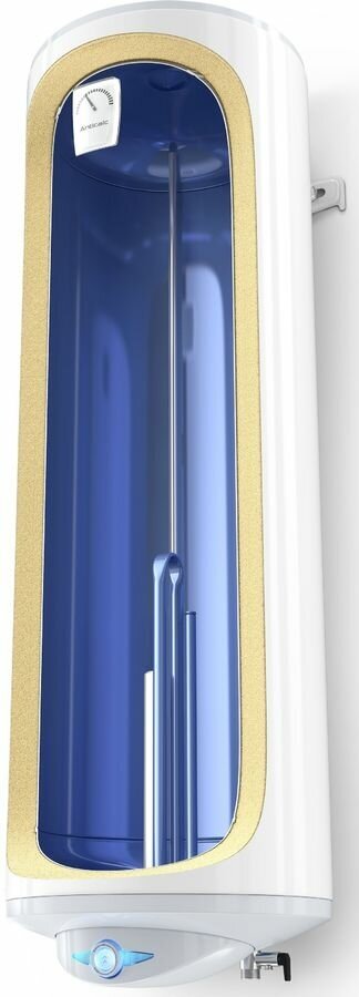 Объем 50 литров, корпусом малого диаметра 35 см, с механическим управлением, сухим ТЭНом мощностью 1,6 кВт и вертикальной установкой, от европейского производителя Tesy, c инновационным стеклокерамическим внутренним покрытием бака Crystal Tech.