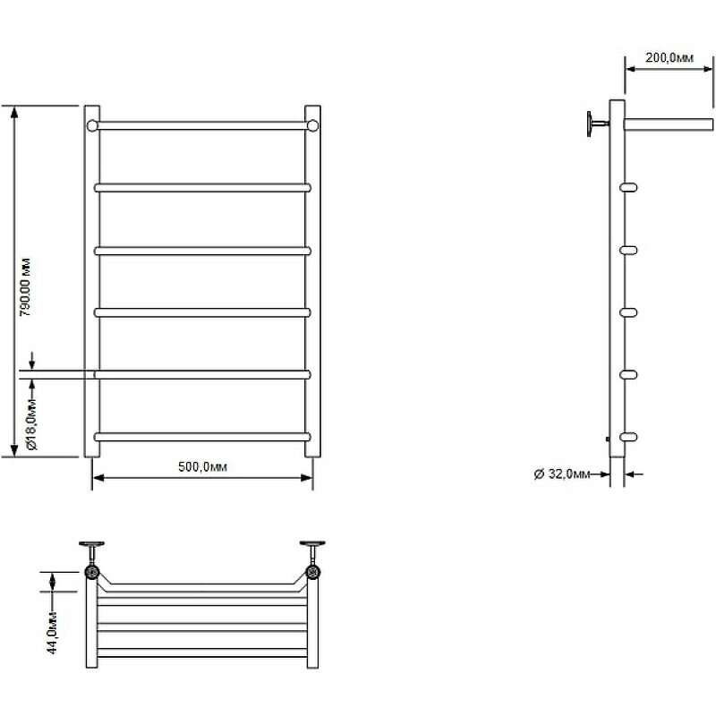 Полотенцесушитель водяной Aquanet Fiona с полкой 800x500, хром призван не только поддерживать оптимальную температуру в ванной комнате, но и подчеркнуть изысканность интерьера. Его форма лесенка придется по вкусу любителям традиционных моделей. Благодаря тому, что коллектор полотенцесушителя состоит из секций, можно рассчитывать на достаточный обогрев помещения, учитывая параметры изделия: ширину 500 мм и высоту 800 мм. Полотенцесушитель выполнен из качественной нержавеющей стали - материала, который обеспечит надежность и долговечность при использовании изделия. Производитель предоставляет на полотенцесушитель гарантию 5 лет. Цвет хром подчеркнет элегантность модели. При установке изделия не сбрасывайте со счетов, что межосевое расстояние - 500 мм.