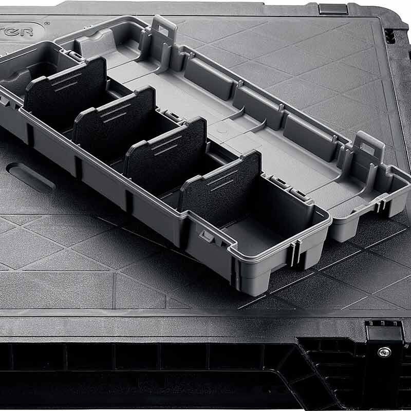 - Ножки и органайзер надежно фиксируются в корпусе при транспортировке и быстро извлекаются при сборке