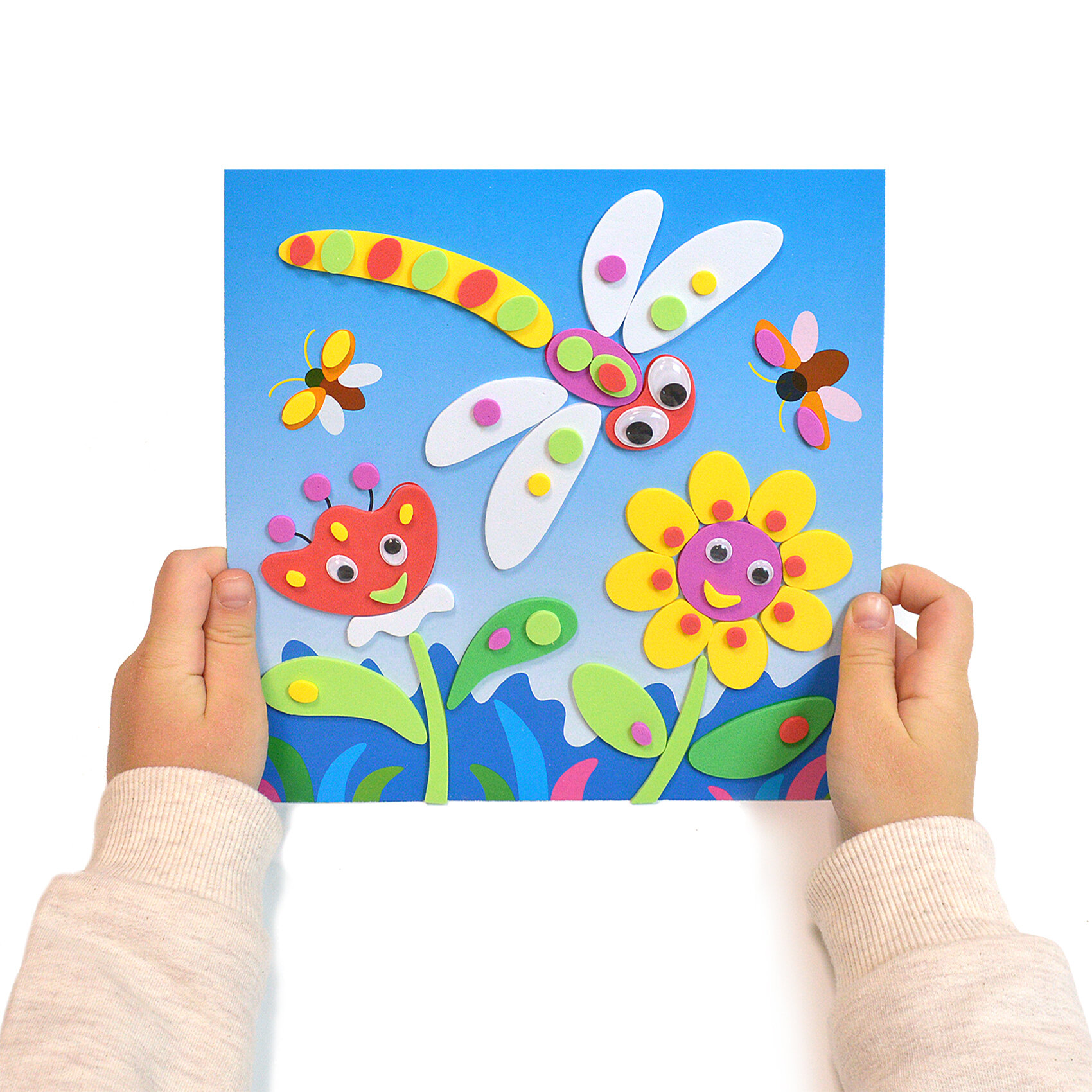 Для создания забавной мягкой картинки вам не понадобятся дополнительные материалы, клей или ножницы. Всё необходимое вы найдёте в нашем наборе. Чтобы наклеить деталь, нужно аккуратно снять её с защитной плёнки и приложить в нужное место на картинке.