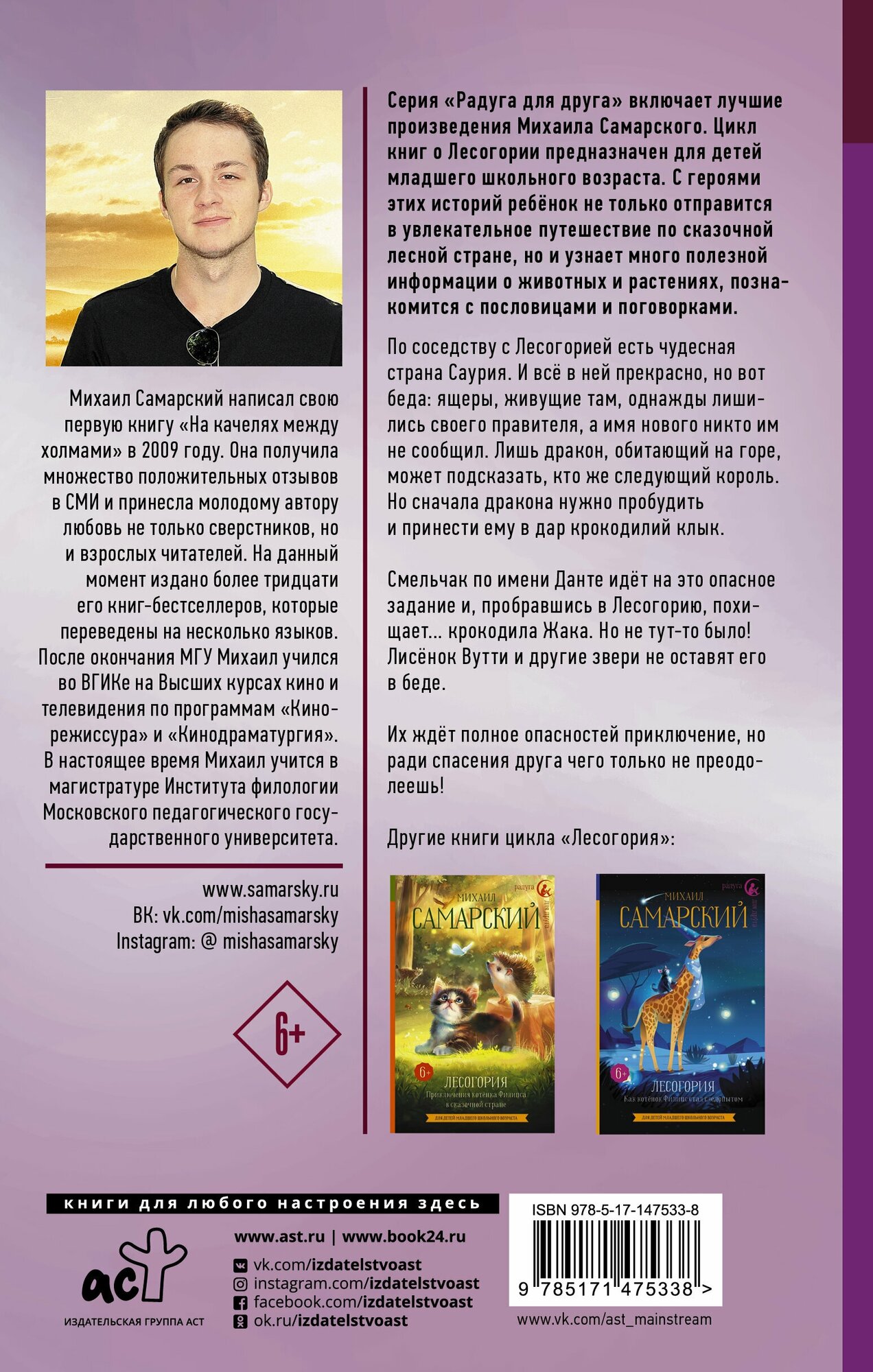 Прекрасная книга( как и вся серия этого автора ) про сказочную страну Лесогория и приключения котенка Филипса. Сыну 6 лет, читаем с ним эту книгу с удовольствием. Мы прочитали уже 3 предыдущие и каждую новую книгу сын очень ждал))