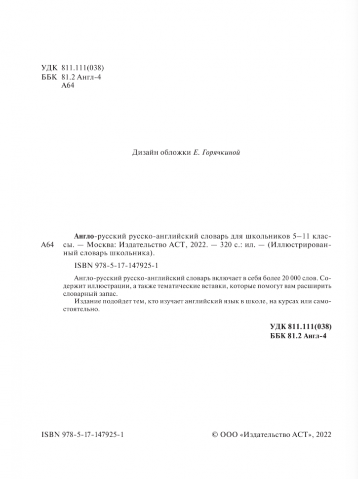 Англо-русский русско-английский словарь для школьников 5-11 классы (Шевченко А.С. (ред.)); ИЗДАТЕЛЬСТВО "АСТ", 2022