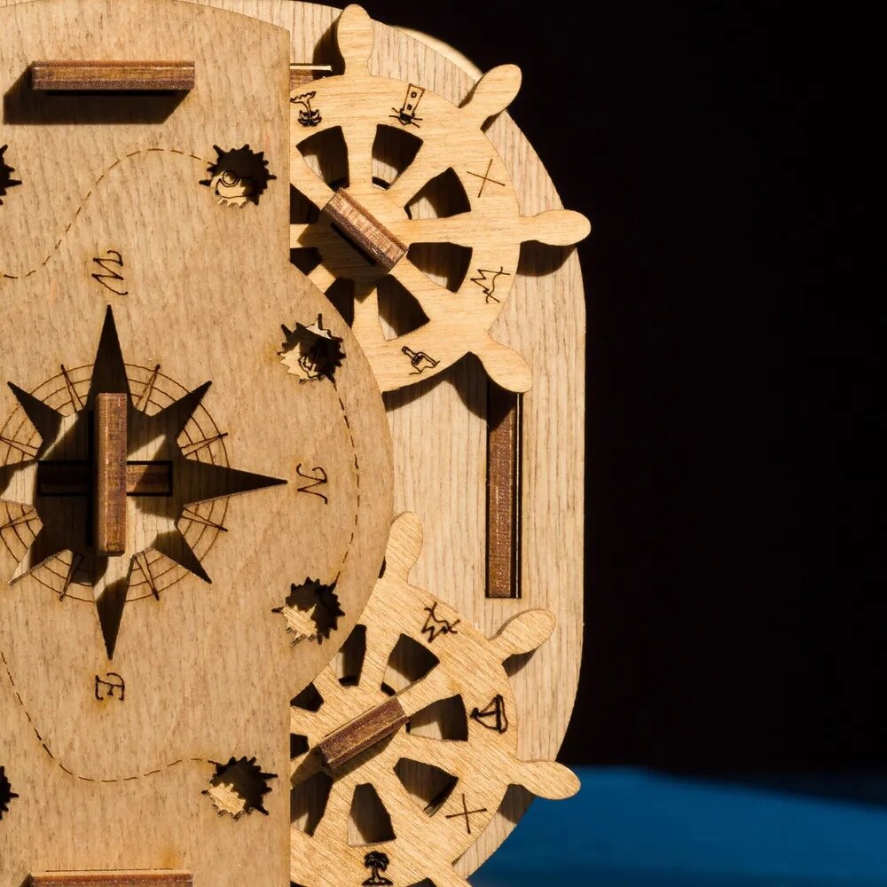 Сразу к делу - в чем суть этой диковинной головоломки? Вся коробка усыпана рычажками, отверстиями, шестеренками и значками. И только самые смелые и внимательные смогут раскрыть тайну этого бокса! Отлично подходит, как подарочная упаковка для небольшого подарка. Порадуйте своего любимого человека не только сюрпризом, но и пищей для ума! Свидетели и очевидцы говорят, что на решение этой головоломки уходит несколько часов и подружек/друзей. То есть вам придется пошевелить шестеренками — во всех смыслах. Качественная сборка, хорошее дерево, привлекательный дизайн.