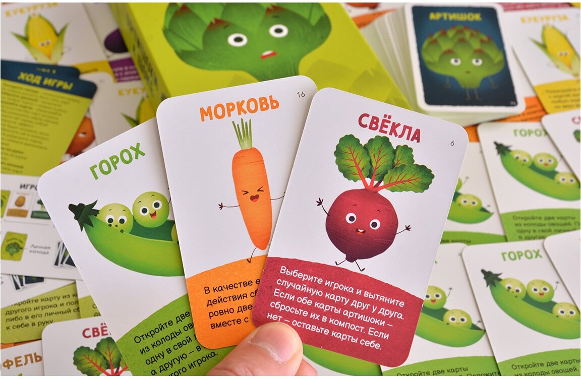 Отлично играется с детьми - правила довольно понятные, в течение первой партии вы точно все поймете и найдете любимчика среди овощей (хе-хе). Также рекомендуем тем, кто в детстве бил палкой крапиву - в вас очень много ненормативной ненависти к обычным растениям. Выплескивайте их на рисованных артишоках, пожалуйста. С другой стороны, а кто не бил? Она противная и жжется больно.