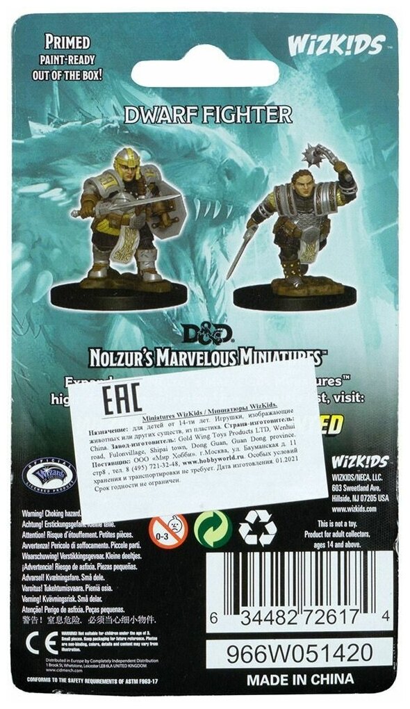 Миниатюры от компании WizKids – идеальные герои и монстры для ваших столов! Они оживят любую партию, а разыгрывать с ними тактические бои на поле – отдельное удовольствие. Детализированные и выполненные из качественного пластика, они изображают популярные архетипы героев и монстров с разным сочетанием рас, классов и оружия. Всегда можно найти что-то для своей ролевой!