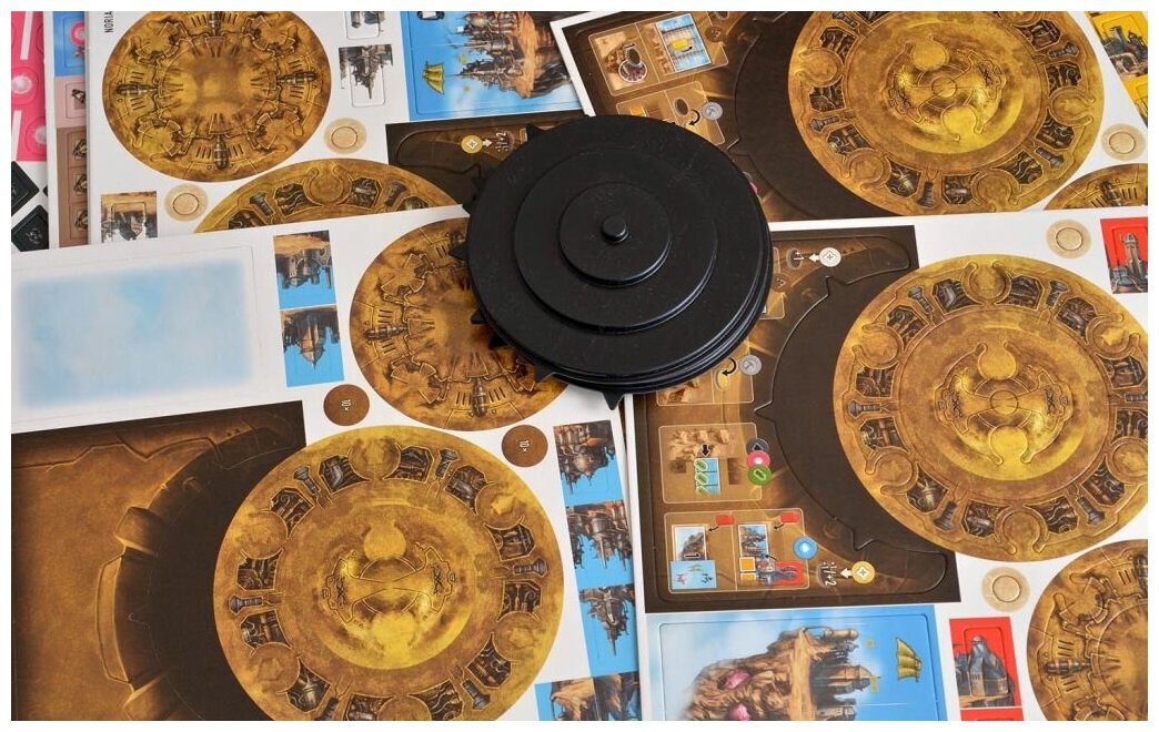 | Комплектация | 90 жетонов ресурсов 57 жетонов кораблей 54 жетона складов 28 жетонов фабрик 26 жетонов знаний 16 жетонов раундов 9 планшетов островов 4 планшета фабрик 1 жетон первого игрока 4 набора колец действий 4 памятки 4 пластиковые пирамиды 72 диска 24 фишки политиков 20 фишек представителей игровое поле правила игры |