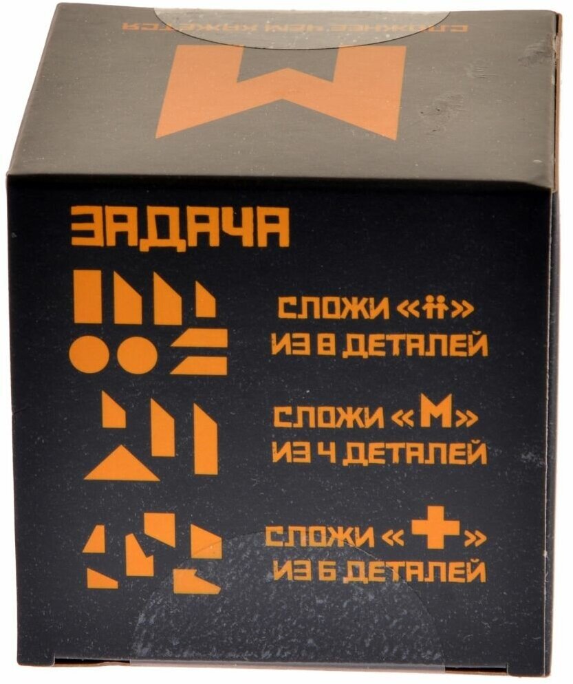 В коробочке несколько деталей, которые складываются в фигуру без зазоров. Не самым очевидным способом. Кое-где придется подумать.