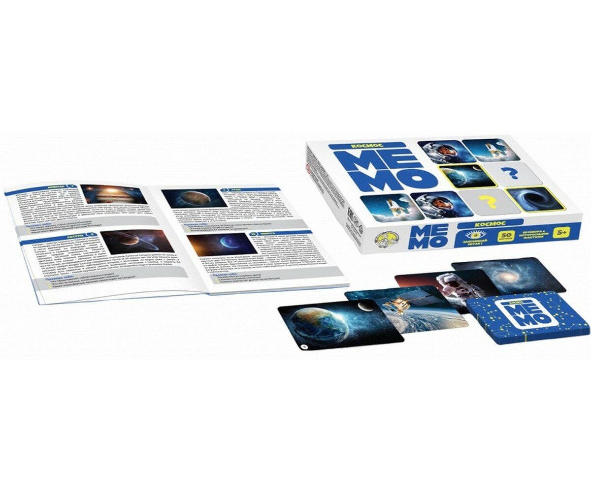 Игра Мемо Космос 50 карточек 03595 Комплектация: 50 карточек, правила Материал: картон Упаковка: картонная коробка Размер упаковки: 15*15*4 см. Особенности: тактическая, обучающая, семейная игра Количество игроков: 2-6 Время игры: 10 -15 минут Возраст: 5+ Страна обладатель бренда: Россия Веселая и интересная настольная игра позволит ребенку увлекательно провести время и получить заряд положительных эмоций. Эта очень увлекательная и динамичная игра обязательно понравится малышам. Такие игры развивают внимание, логику, наблюдательность и мышление. Все элементы выполнены из качественных и износостойких материалов. Игра-мемо прекрасно развивает зрительное восприятие и память: нужно перемешать выложить карточки рядами рубашкой вверх. игроки по очереди переворачивают по две картоки - если картинки совпали, то игро забирает карточки себе, если нет, то игрокам нужно запомнить, что на них изображено и где они лежат, чтобы использовать это наблюдение в свой ход. Побеждает тот, кто соберет больше всех пар карточек.