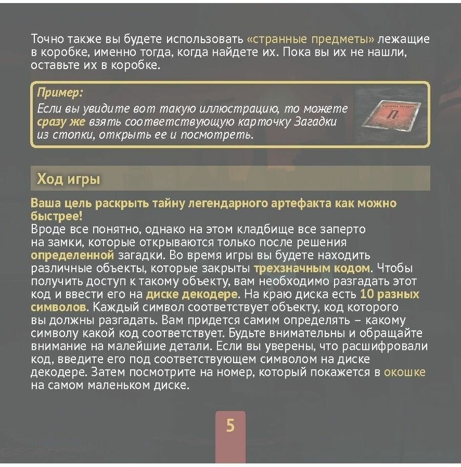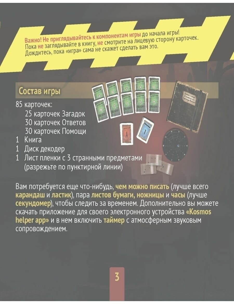 | Комплектация | Диск декодер, 85 Игровых карточек, 3 Странных предмета, 1 Книга, 1 Правила игры |