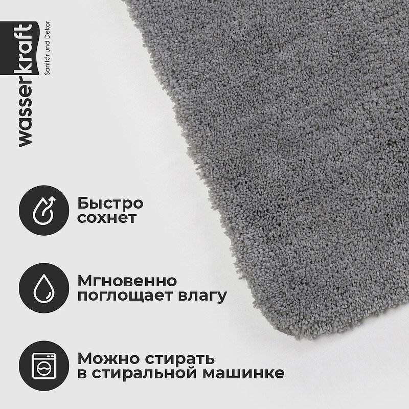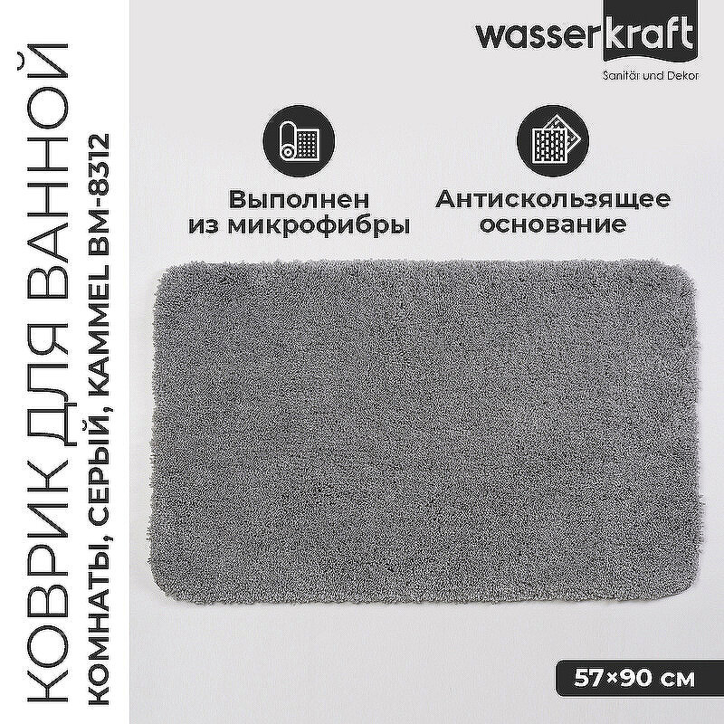 Коврик для ванной комнаты WasserKRAFT Kammel BM-8312 57х90 см серый.