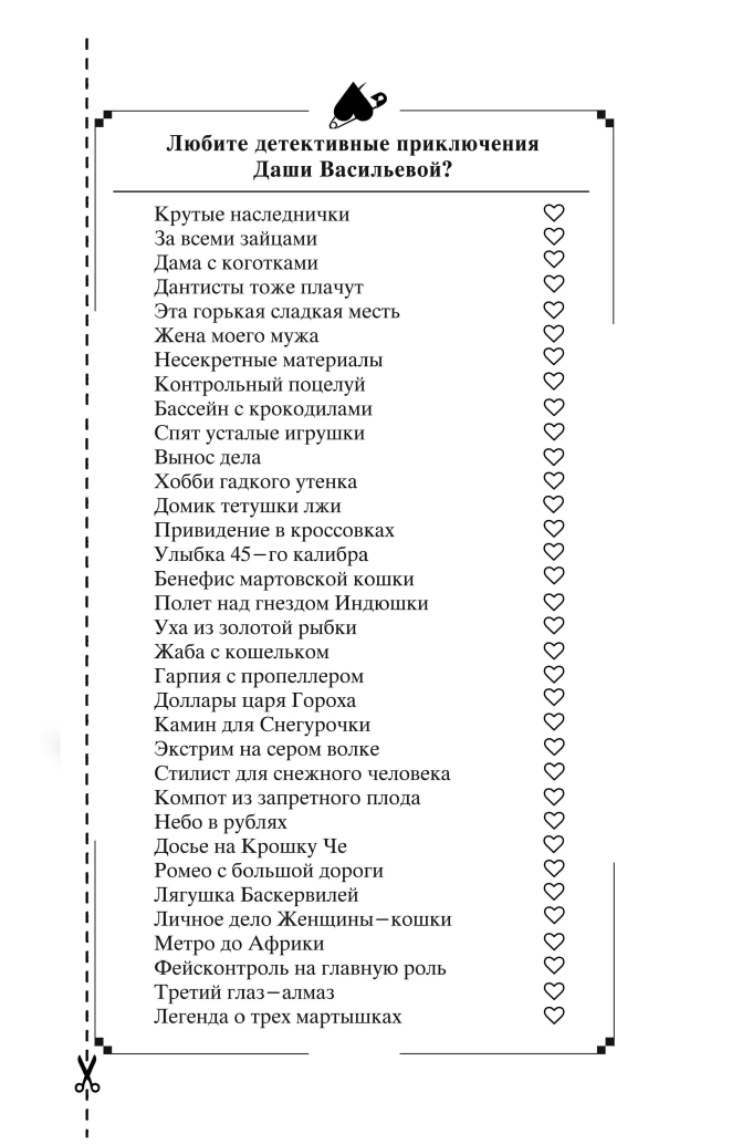 Получила огромное удовольствие от книги Дарьи Донцовой "Коза и семеро волчат",цикл Даша Васильева. Как всегда итересный сюжет и легкость чтения. Серия про Дарью Васильевну моя самая любимая. В книгах Дарьи Донцовой всегда присутствует юмор, есть места где можно посмеяться от души. Но при все этом в сюжет книги и в героев надо вникать, чтоб понять весь смысл текста. Книги Дарья Донцовой читаю уже много лет и всегда с интересом.