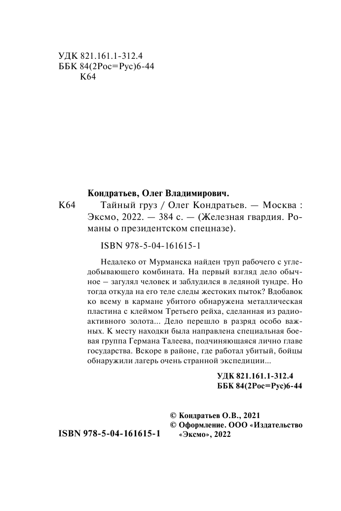 Книга: Тайный груз (Кондратьев Олег Владимирович); ООО "Издательство "Эксмо", 2022