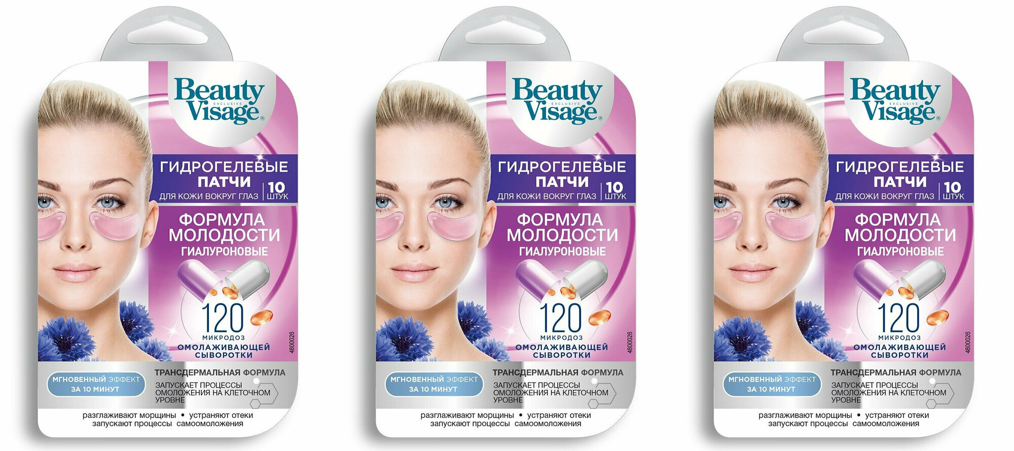 Гидрогелевые патчи Формула молодости превосходят все Ваши представления о молодости кожи. Они плотно прилегают к коже, создавая определенный микроклимат, благодаря которому 120 микродоз профессиональной омолаживающей сыворотки мгновенно проникают в глубокие слои и запускают процессы омоложения на клеточном уровне. Трансдермальная формула на основе гиалуроновой кислоты, экстракта жемчуга, коллагена и витамина А разглаживает морщины, устраняет отеки, укрепляет, уплотняет и освежает кожу вокруг глаз. Всего за 10 минут регулярного применения Вы сможете остановить время и навсегда оставаться молодой и красивой. В комплекте 3 упаковки.