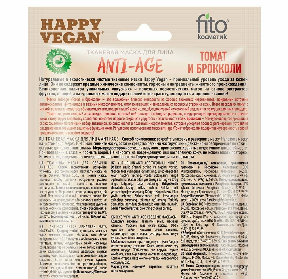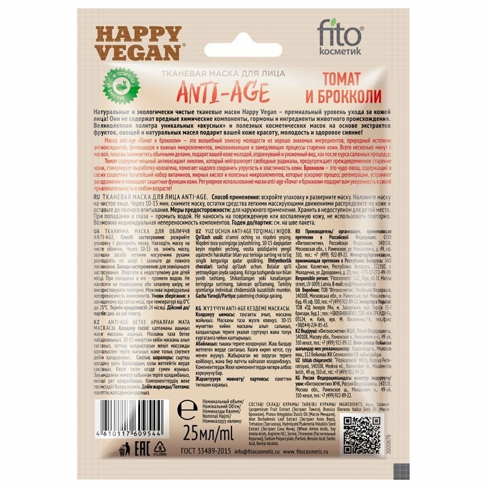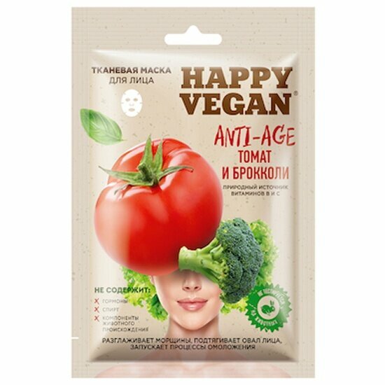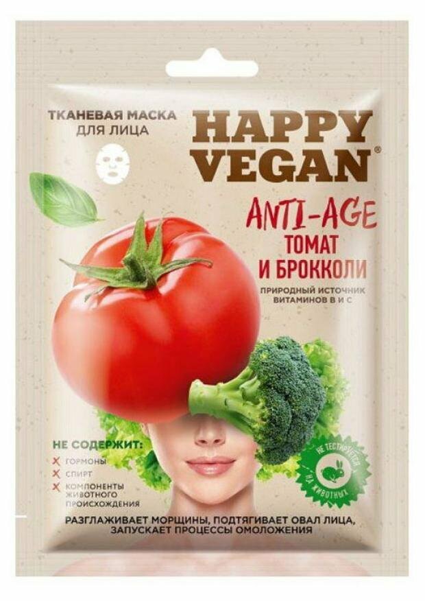 Маска для лица Happy Vegan тканевая Anti-age Томат и брокколи 25мл Fito косметик