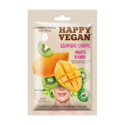 Маска для лица Happy Vegan тканевая Здоровое сияние Манго и киви 25мл Fito косметик