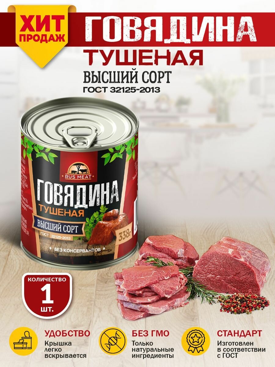 Сервис сравнения цен СкидкаГИД предлагает сравнить цены на товар «Говядина Rus Meat Тушеная высший сорт 338г»