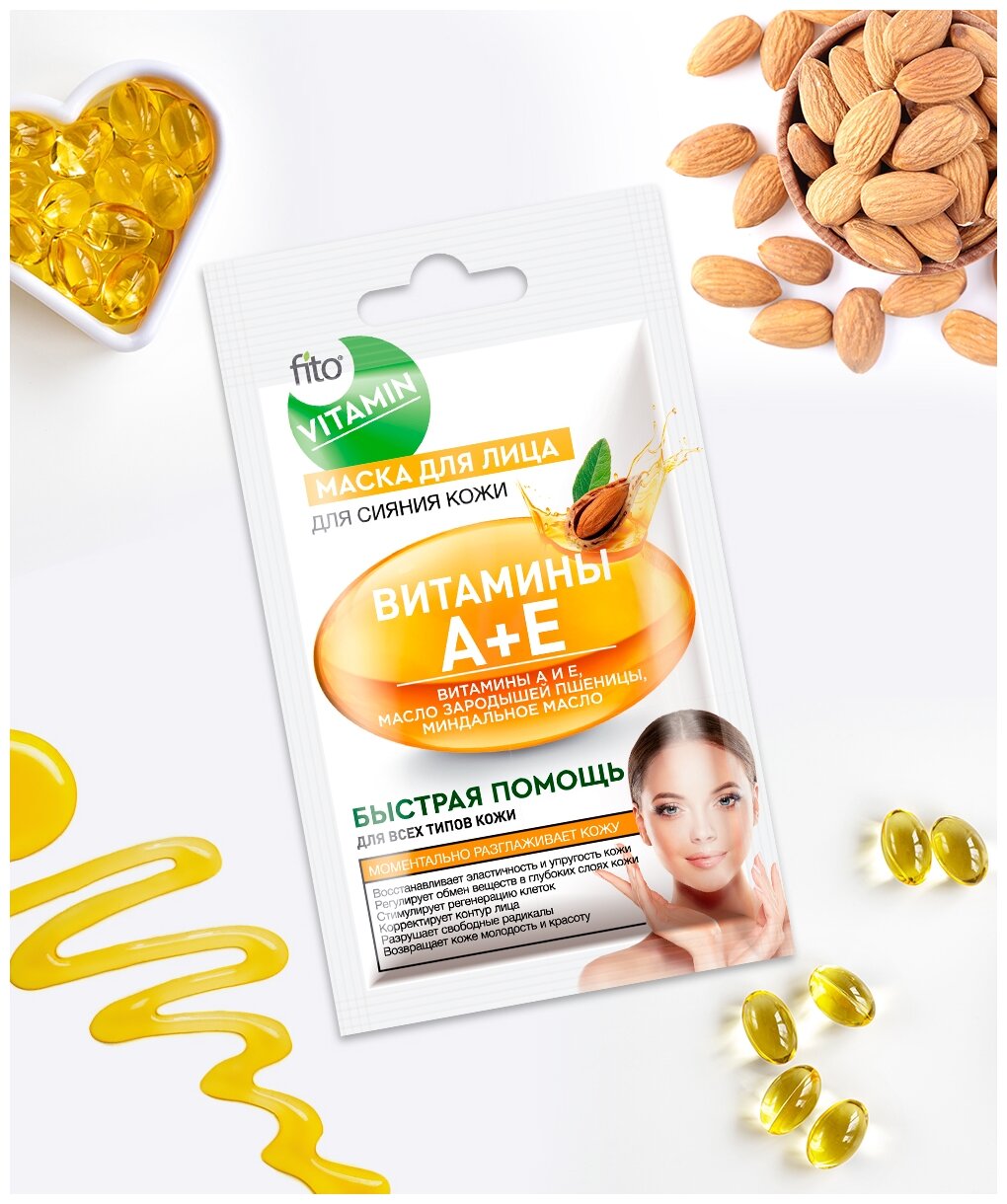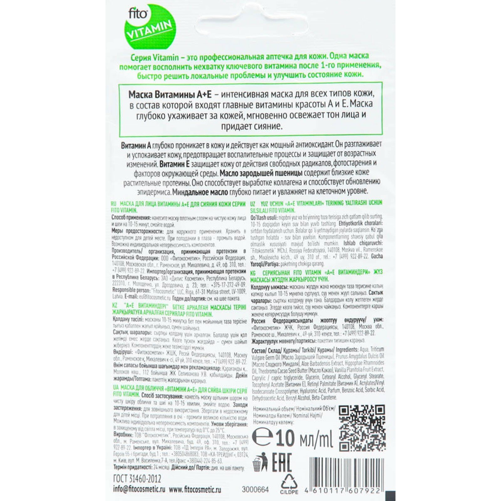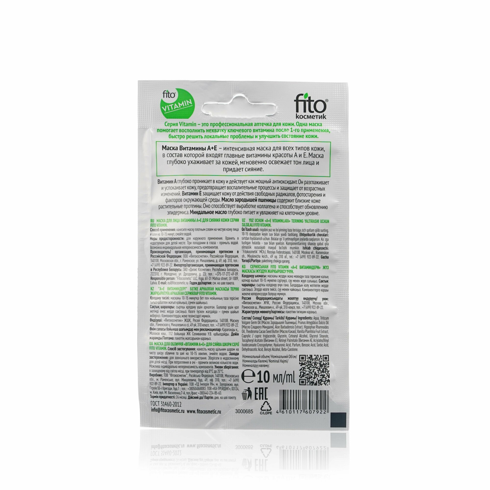 Маска для лица Fito Vitamin Витамины А+Е для сияния кожи 10мл ФИТОКОСМЕТИК
