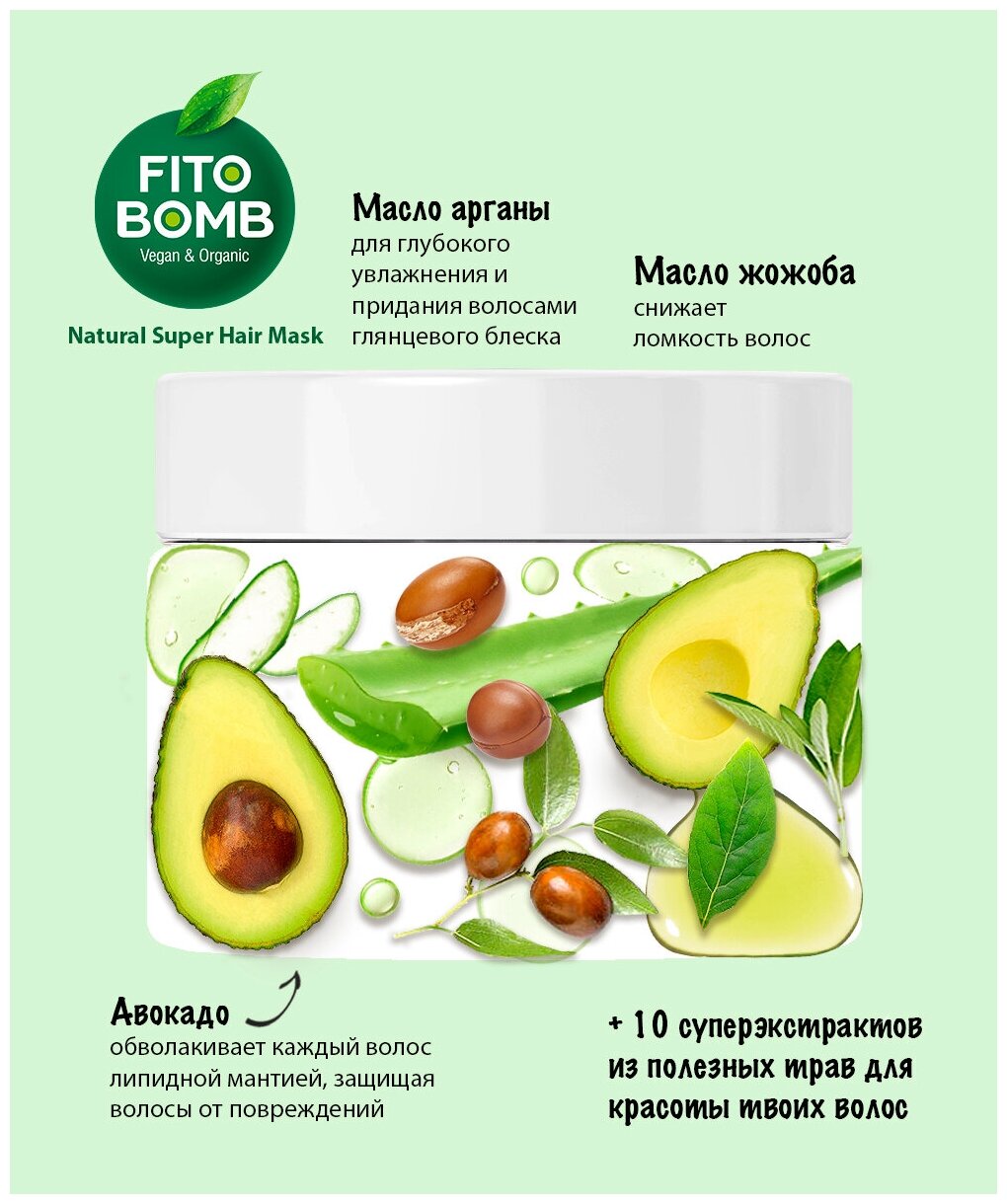 Маска для волос Fito Bomb Увлажнение Гладкость Укрепление Сияние цвета 250мл Fito косметик